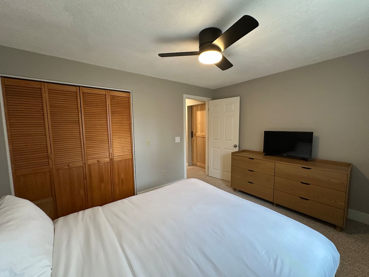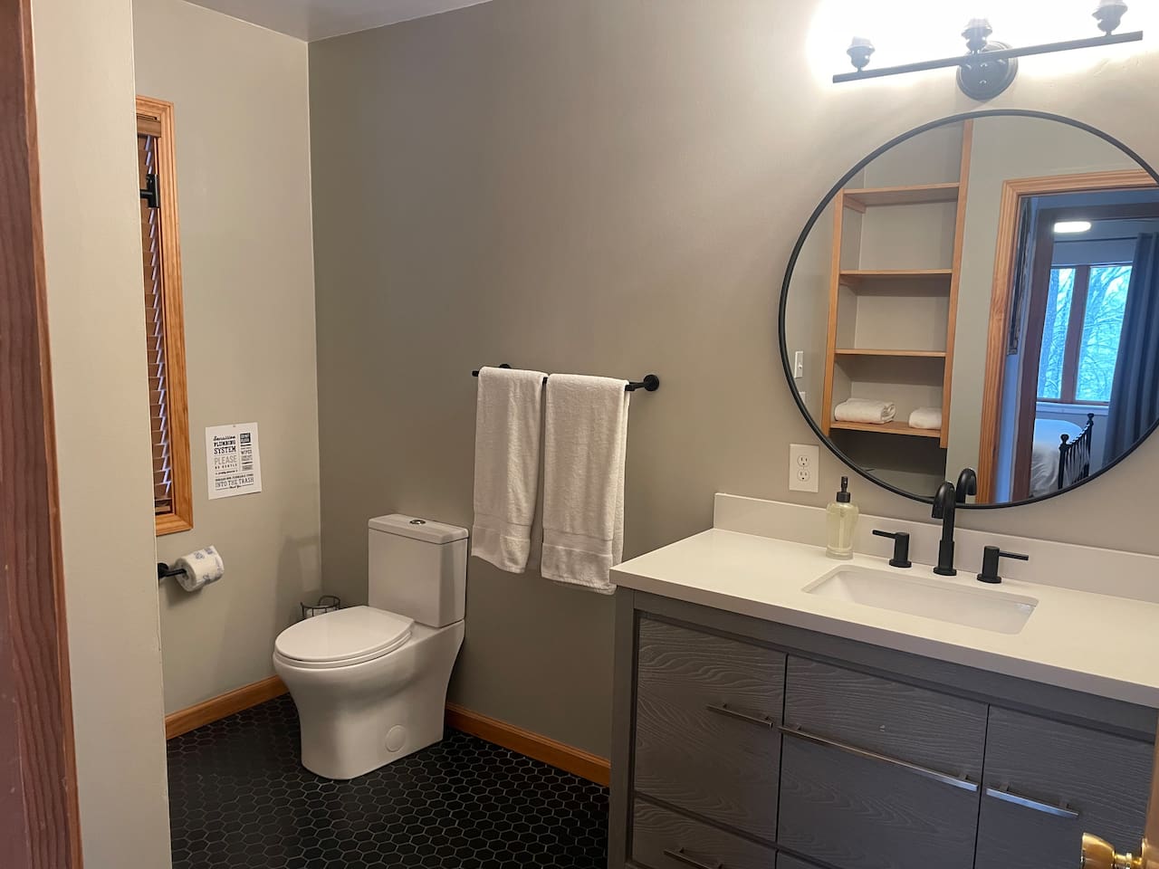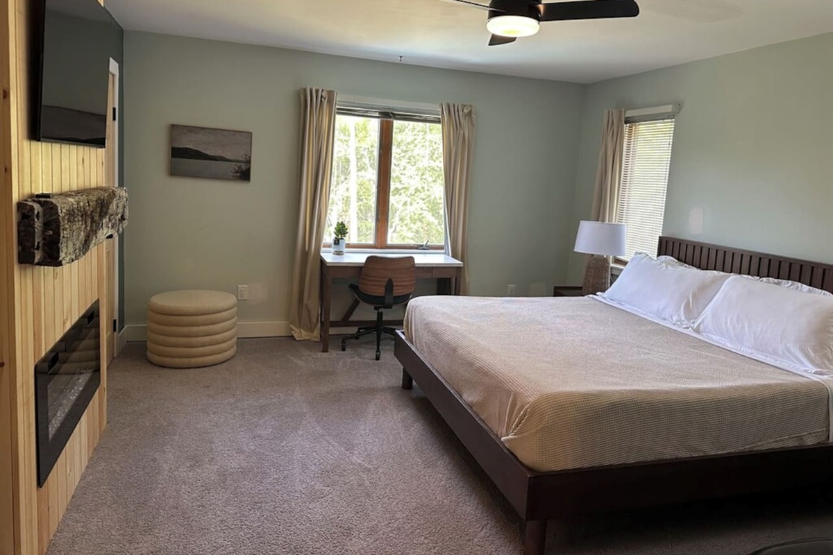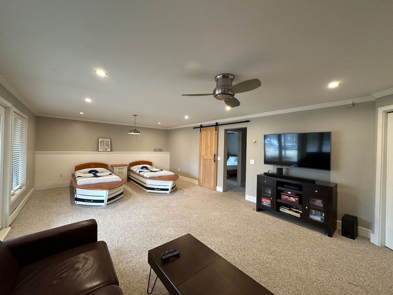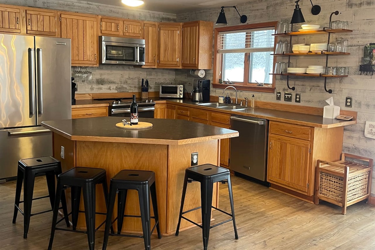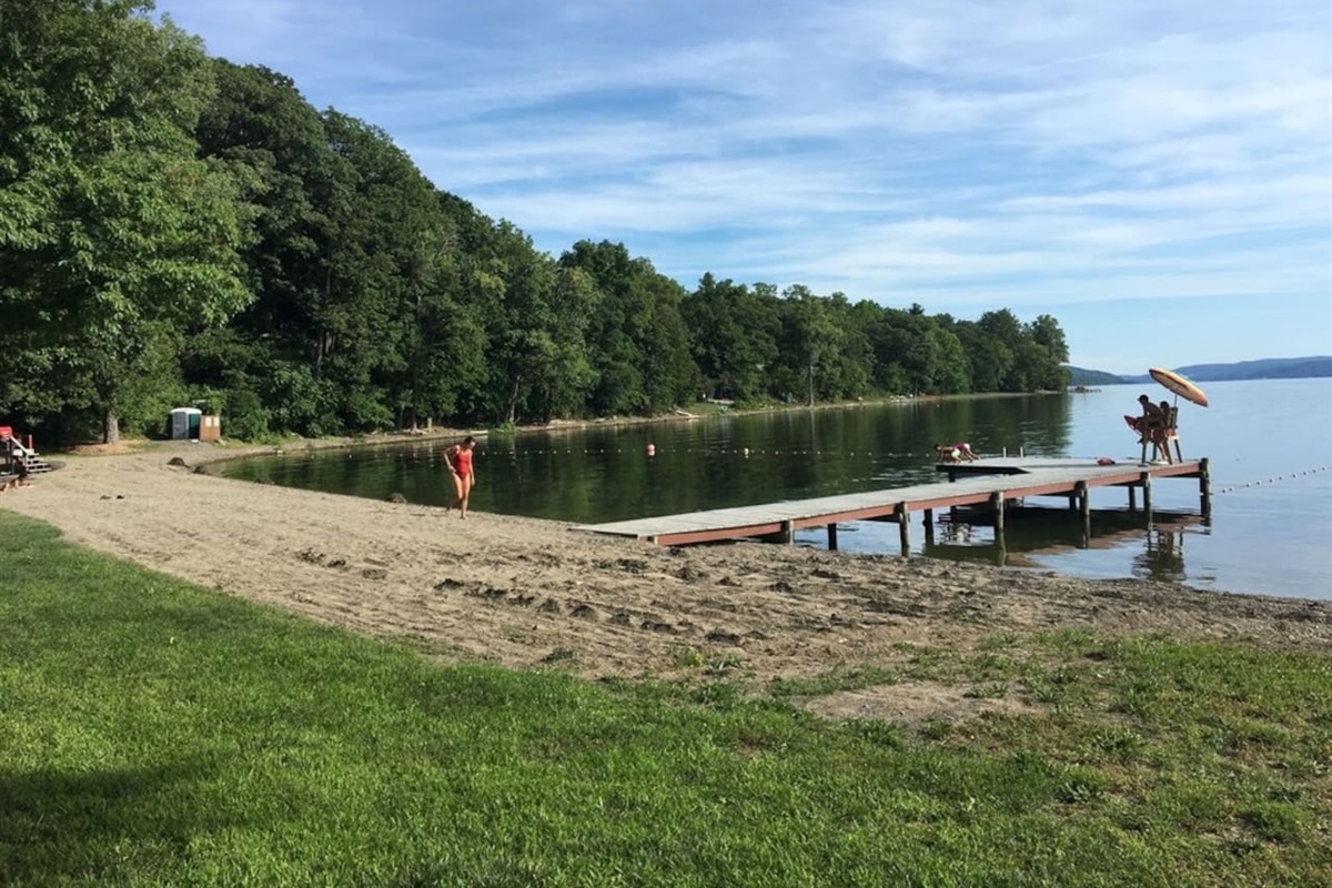 4 Bedrooms • 3 Bathrooms 3 Baths • Sleeps 8-12From the house, it is a 5 minute walk (10 minutes with little ones or people with less mobility) down to the lake with access through Smith Park, which is across the road from our property. When in-season, the wade-in beach has lifeguards on duty, benches, grills, and plenty of space to grab a nap, catch up on a book, or splash around. For the braver souls, there is a dock to jump into the deeper water, too!