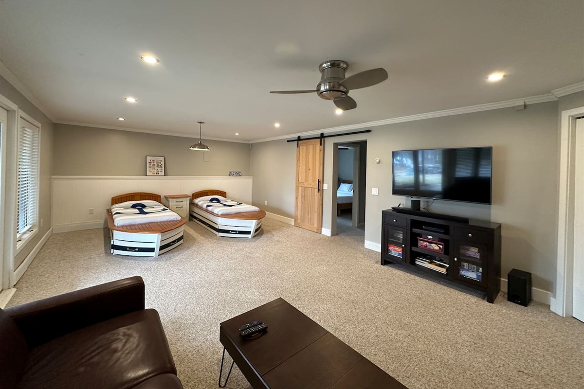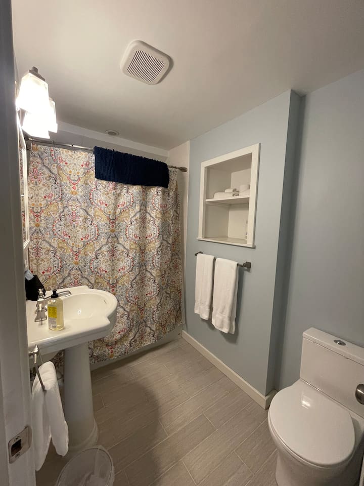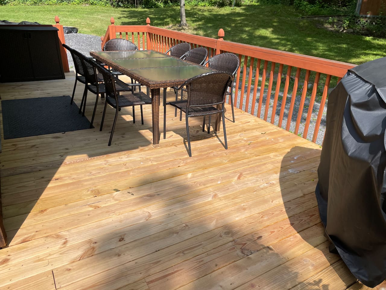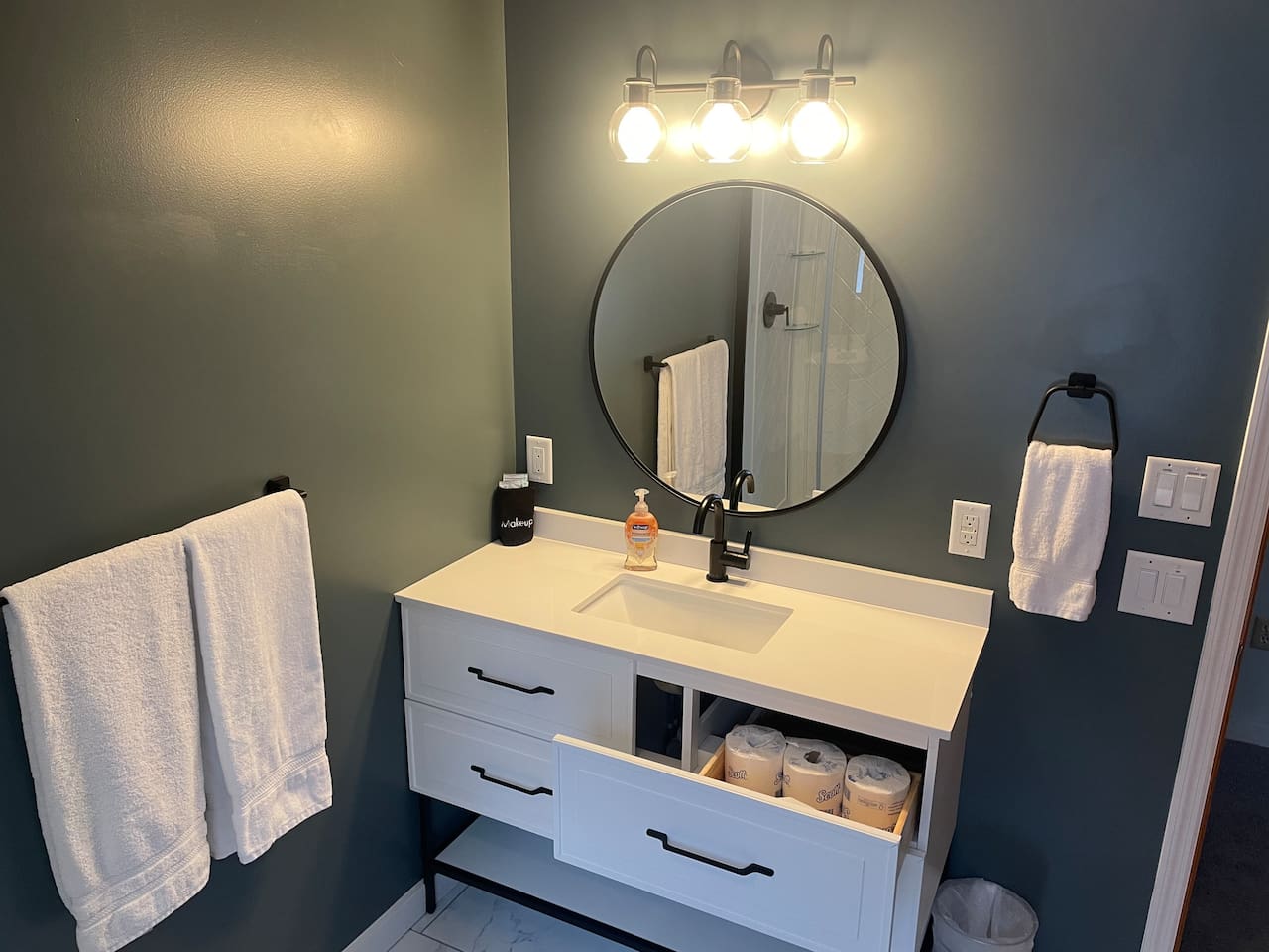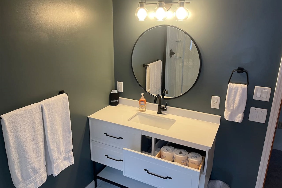 4 Bedrooms • 3 Bathrooms 3 Baths • Sleeps 8-12From the house, it is a 5 minute walk (10 minutes with little ones or people with less mobility) down to the lake with access through Smith Park, which is across the road from our property. When in-season, the wade-in beach has lifeguards on duty, benches, grills, and plenty of space to grab a nap, catch up on a book, or splash around. For the braver souls, there is a dock to jump into the deeper water, too!